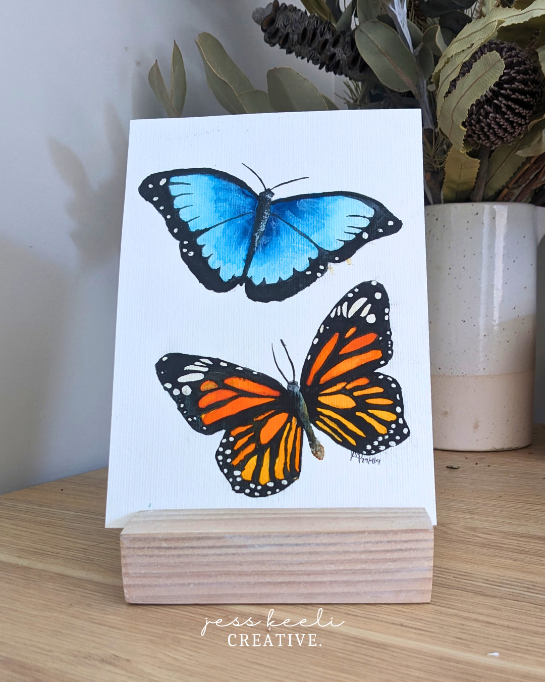 - Watercolour painting of Beth & Mina, the Blue Morpho and Monarch Butterflies