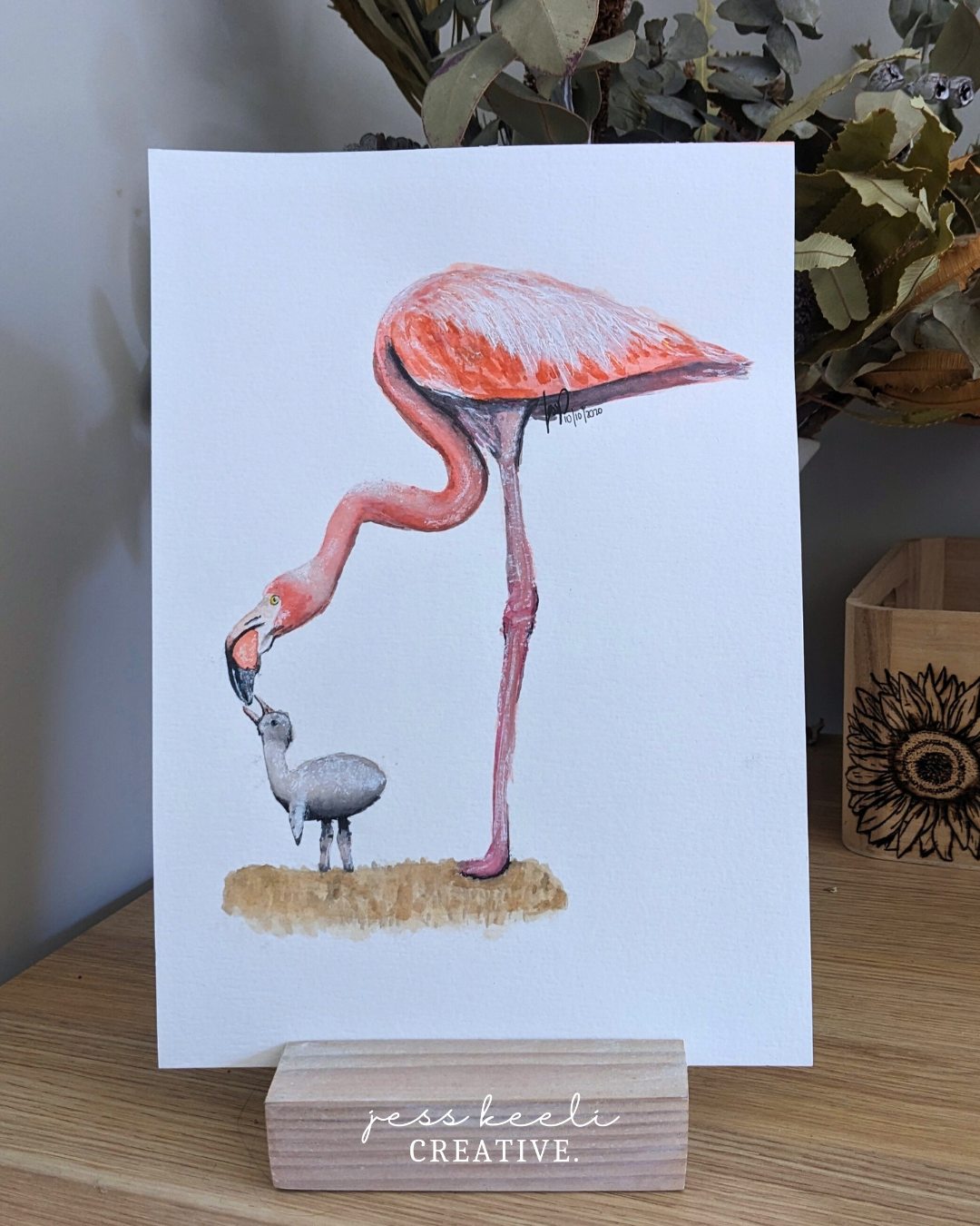 - Watercolour painting of Frankie & Frida the Flamingos