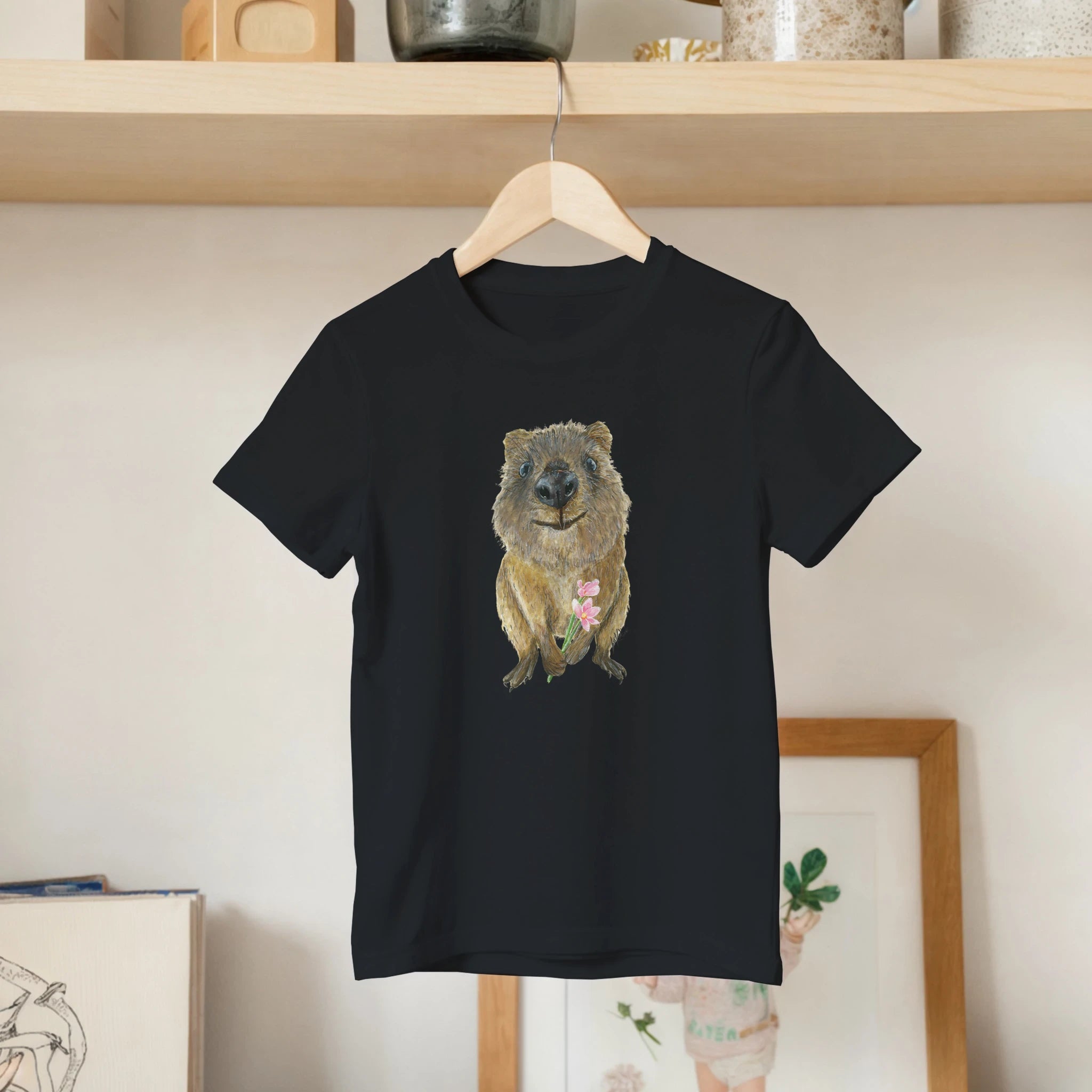 Introduce your child to the cheeky Quokka with a JKC watercolour Kid's T-Shirt. This unique design not only adds a splash of colour to any outfit but also promotes a love for nature and art.